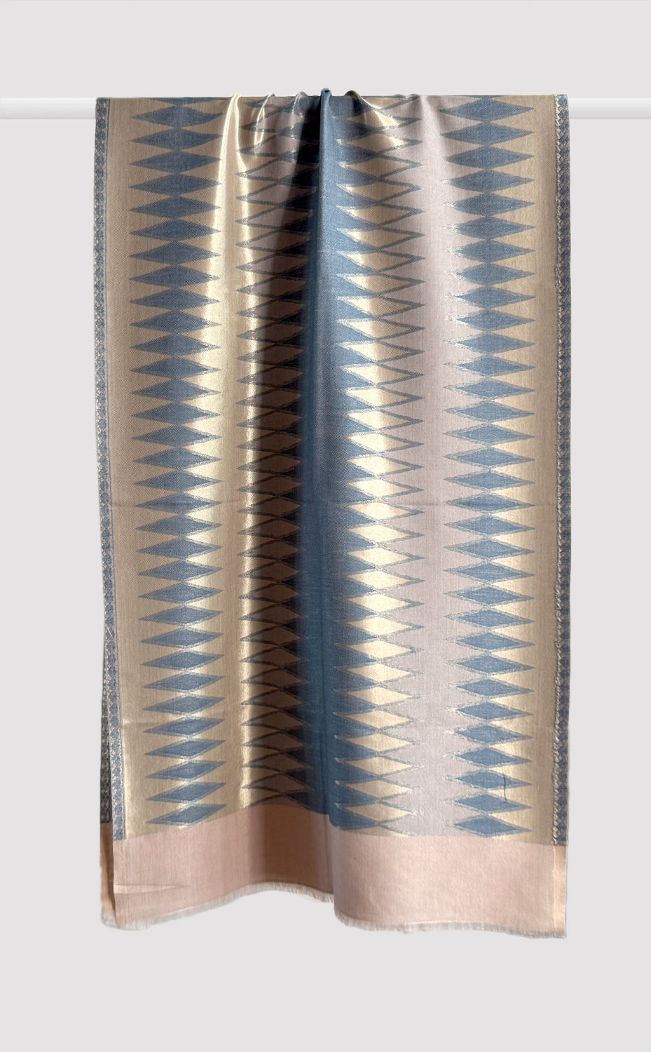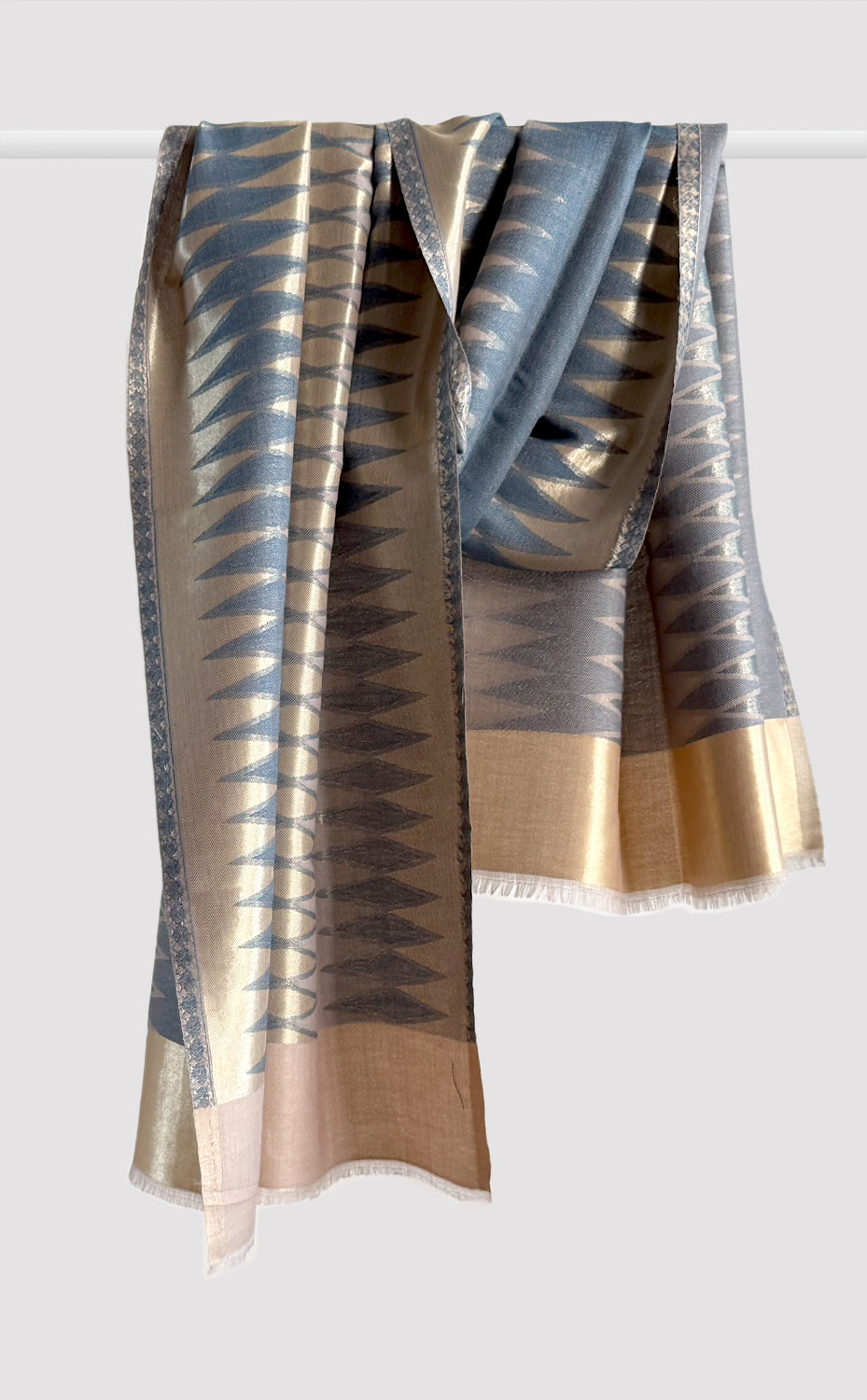 Regular price Rs. 6,000.00Luxurious fine wool stole in a festive slate blue color and zari diamond design. The all over woven zari gives a seamless & elegant festive look. The perfect accessory for the festive winter season that will elevate all your outfits