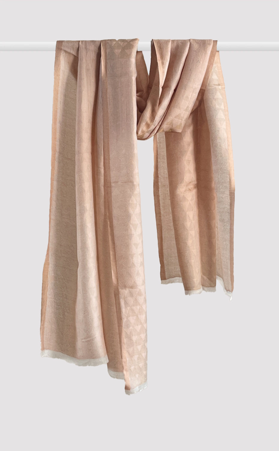 Regular price Rs. 5,500.00 Sale price Rs. 3,850.00 Save 30%Luxurious fine wool stole in peach and gold zari triangles. The perfect accessory for the festive winter season that will elevate all your outfits