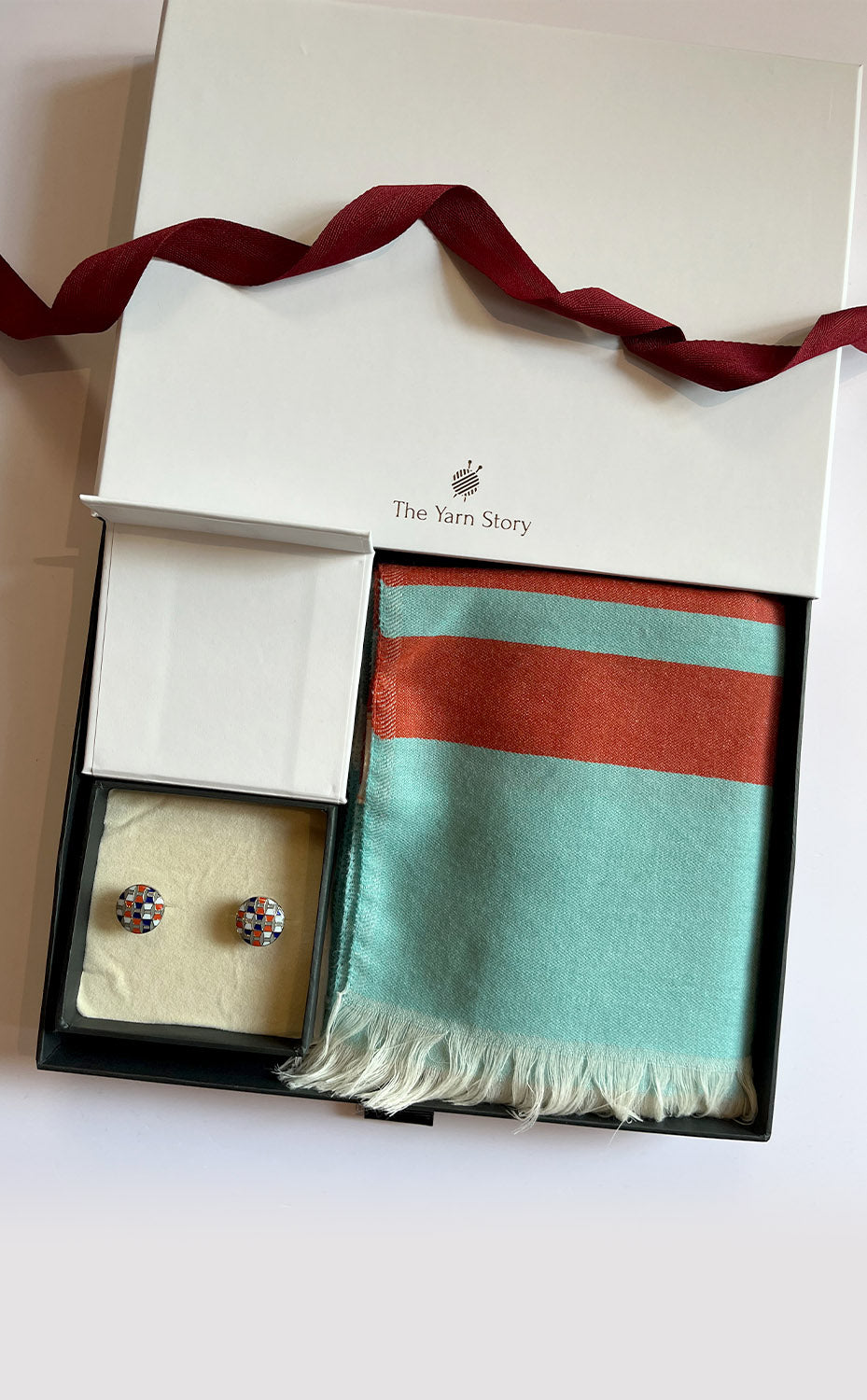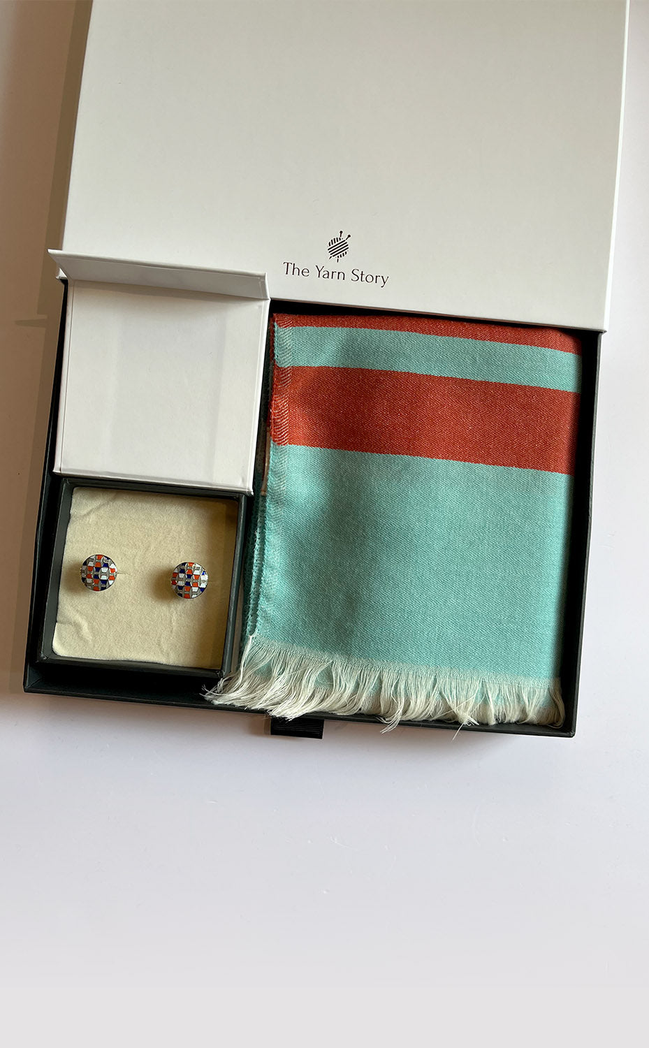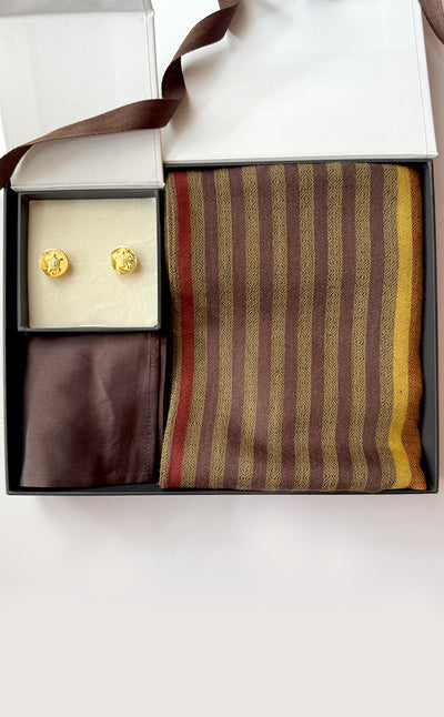 Regular price Rs. 9,360.00Luxurious merino wool striped muffler paired with our moroccan rose cufflink