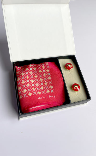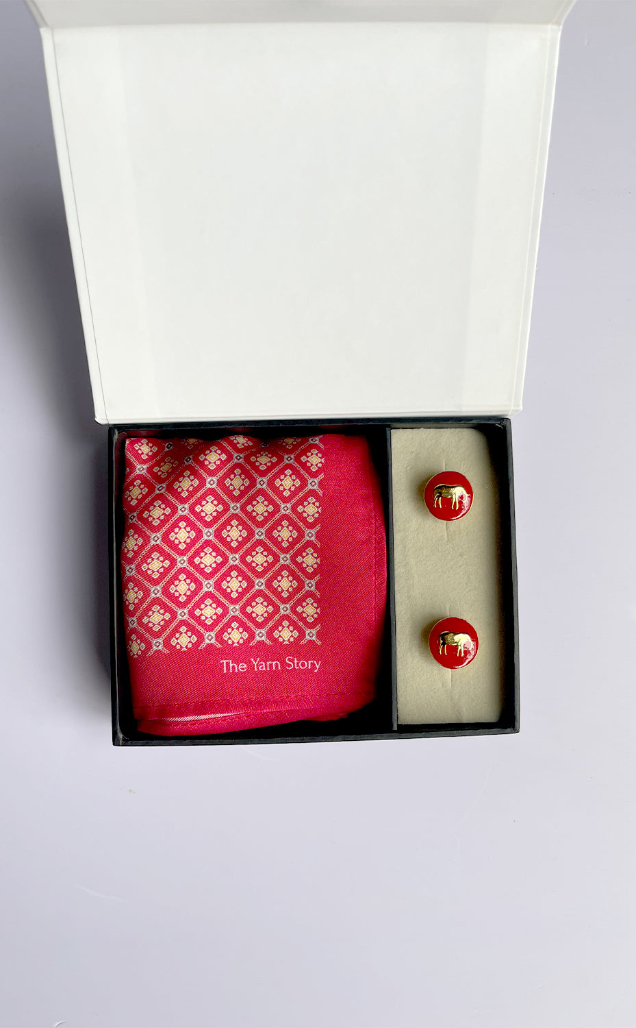Regular price Rs. 6,000.00Lovely pocket square paired with our red elephant cufflink