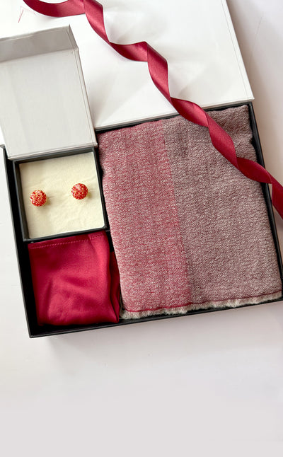 Regular price Rs. 8,400.00Luxurious wool muffler paired with our cobalt red cufflink & pocket square