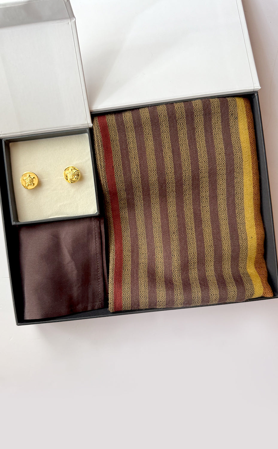Regular price Rs. 10,800.00Luxurious wool muffler paired with our gold turtle cufflink & pocket square