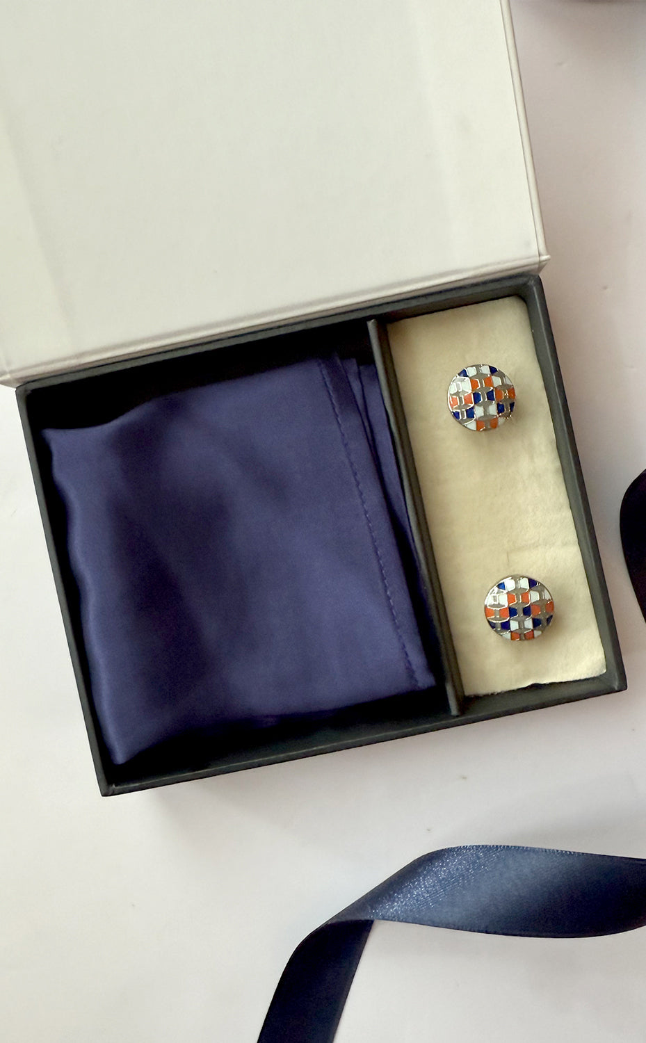 Regular price Rs. 4,560.00Inspired by geometry in our daily lives, these cufflinks are hand made by artisans in Jaipur who intricately enamel paint each piece. Wear it with any solid shirt for a pop of colour and style to your outfit