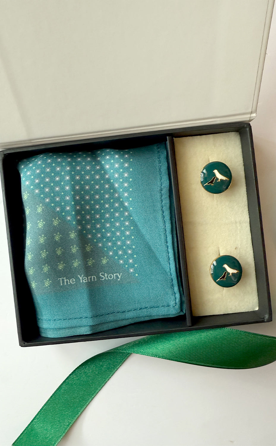 Regular price Rs. 6,000.00Lovely pocket square paired with our turquoise dove cufflink