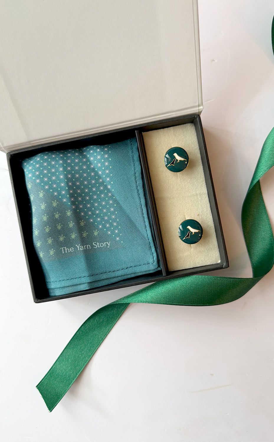 Regular price Rs. 6,000.00Lovely pocket square paired with our geometric aqua cufflink