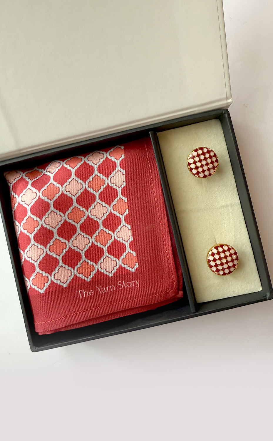 Regular price Rs. 6,000.00Lovely pocket square paired with our moroccan red cufflink