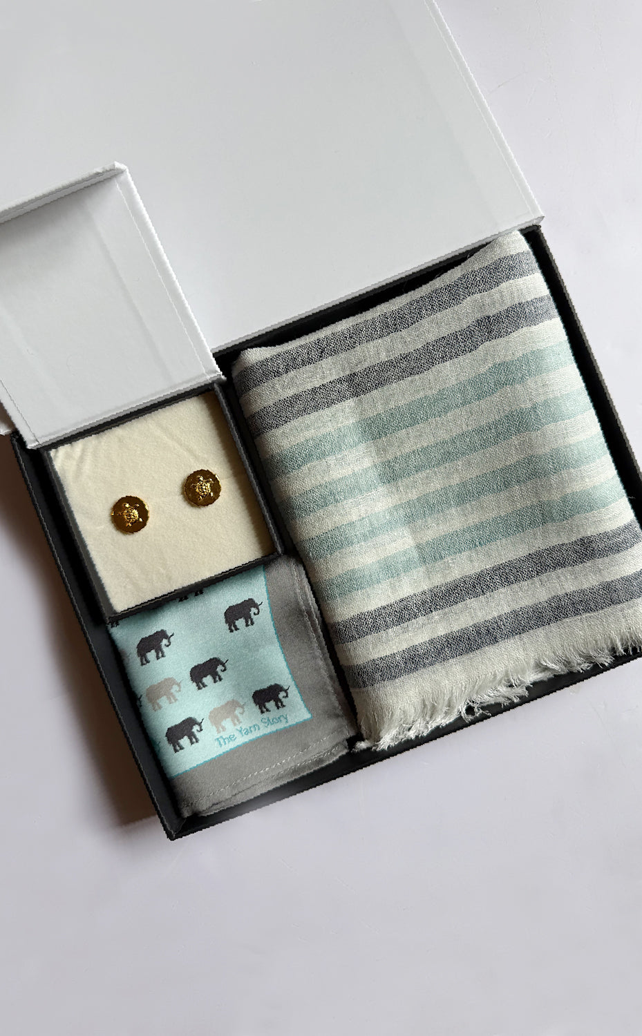 Choose from our range of curated gift sets for Him! Thoughtfully curated for Him, from vibrant pocket squares to classic mufflers & cufflinks