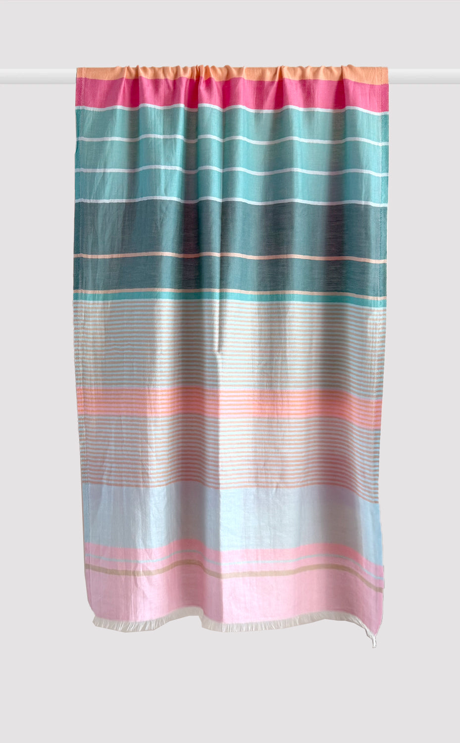 Regular price Rs. 2,640.00Luxurious fine cotton stole in multicolored stripes, elegant yet striking. The perfect accessory for adding a touch of sophistication to any outfit
