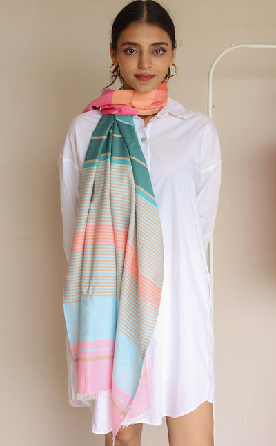 Regular price Rs. 8,400.00A luxurious stole crafted in soft merino wool with multicolor stripes. A perfect wrap for your winters to keep warm