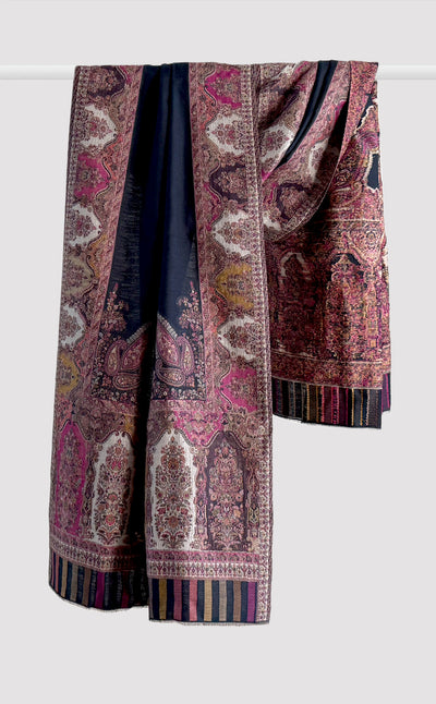 Navy Motif Border Kani Stole