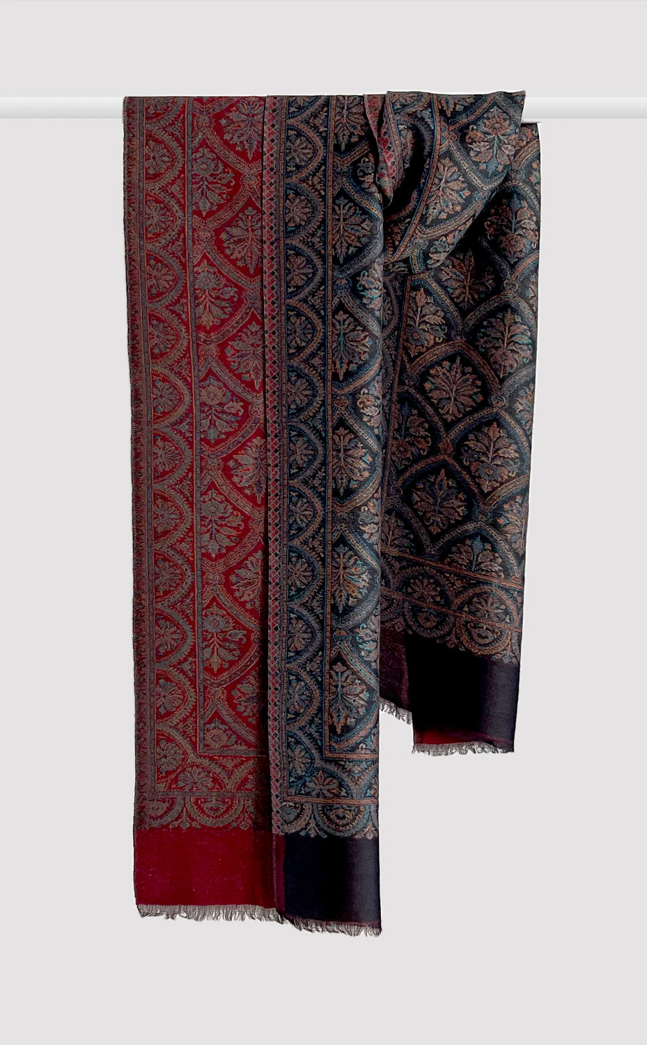 Regular price Rs. 18,000.00Made in Kashmir from natural & organically sourced wool pashmina, these shawls are pure and magical. The ultra fine reversible fabric makes for an elegant stole for men & women. Each shawl is handmade by our artisan in the heart of Kashmir