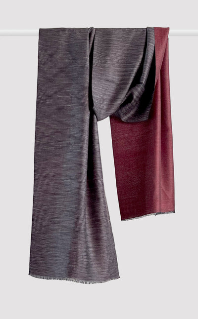 Regular price Rs. 9,000.00Our versatile muffler with soft, textured fabric provides warmth and comfort. The piece features beautiful solid red on one side and grey color ikat design on the other. Classic and timeless, this is a must have for any wardrobe