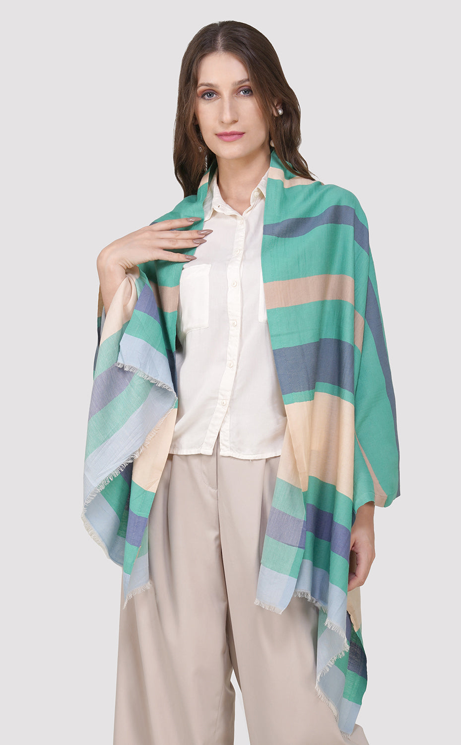 Regular price Rs. 8,400.00A luxurious stole crafted in soft merino wool with multicolor stripes. A perfect wrap for your winters to keep warm