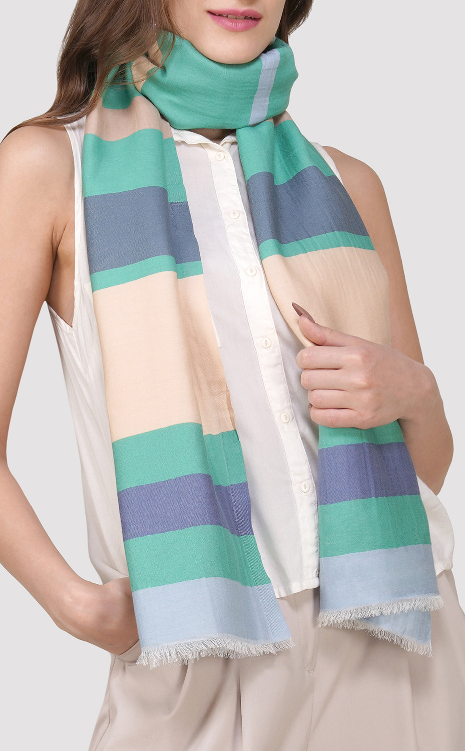 - Casual Chic: Pair the stole with a white blouse and denim jeans. Let it drape loosely around your neck for a relaxed look