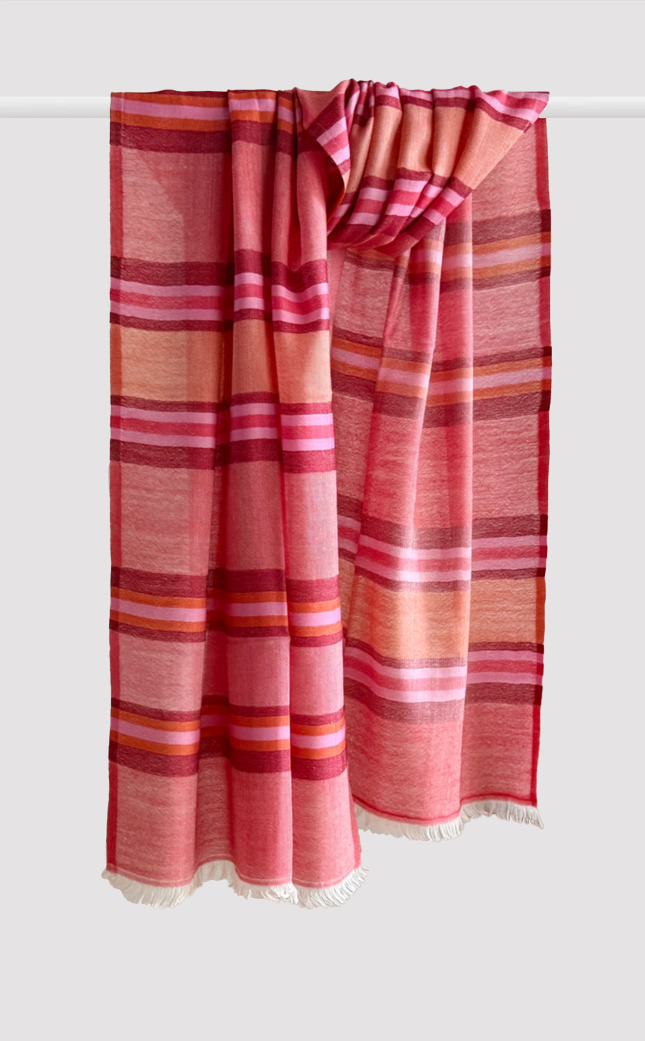 Regular price Rs. 6,000.00This design creates a visually captivating and harmonious blend of vibrant colours and texture. Featuring a series of asymmetrical stripes in hues seamlessly woven together adding depth and dimension to the shawl. Each piece is crafted using fine merino wool with a textured feel perfect for winter