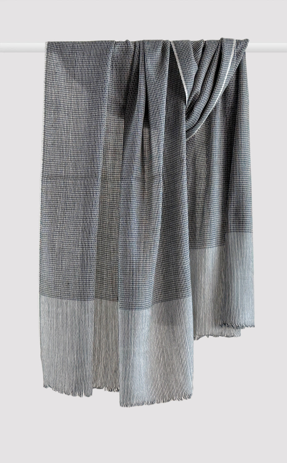 Regular price Rs. 5,400.00Luxurious fine wool stole with minute black and white checks. Fine wool blended with silk gives it an ultra soft & cozy feel