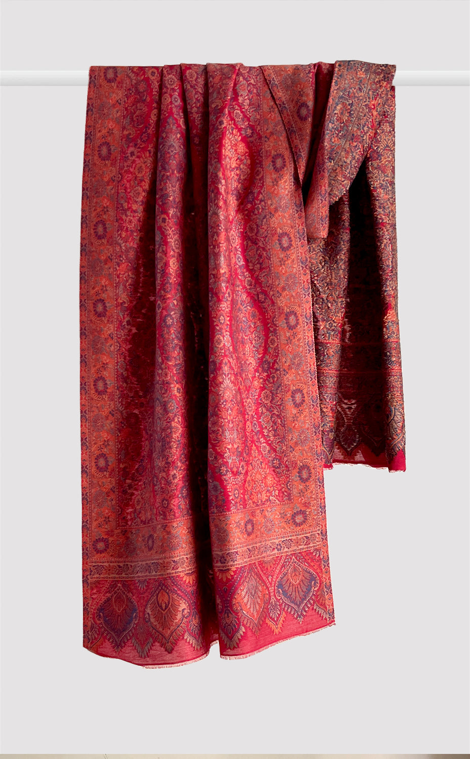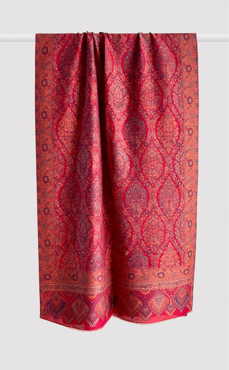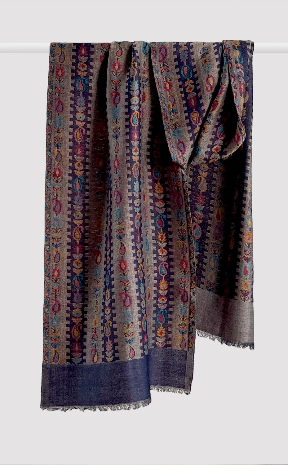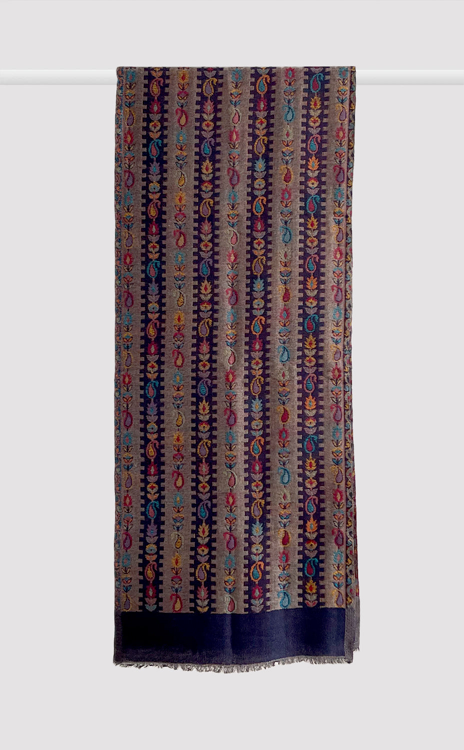 Regular price Rs. 7,800.00Our traditional kani muffler is a woven work of art made of colored threads to create intricate flowing motives. This piece features beautiful kani work along with paisley motifs, delicate designs and reversible back. Classic and timeless, a kani is a must have for any wardrobe