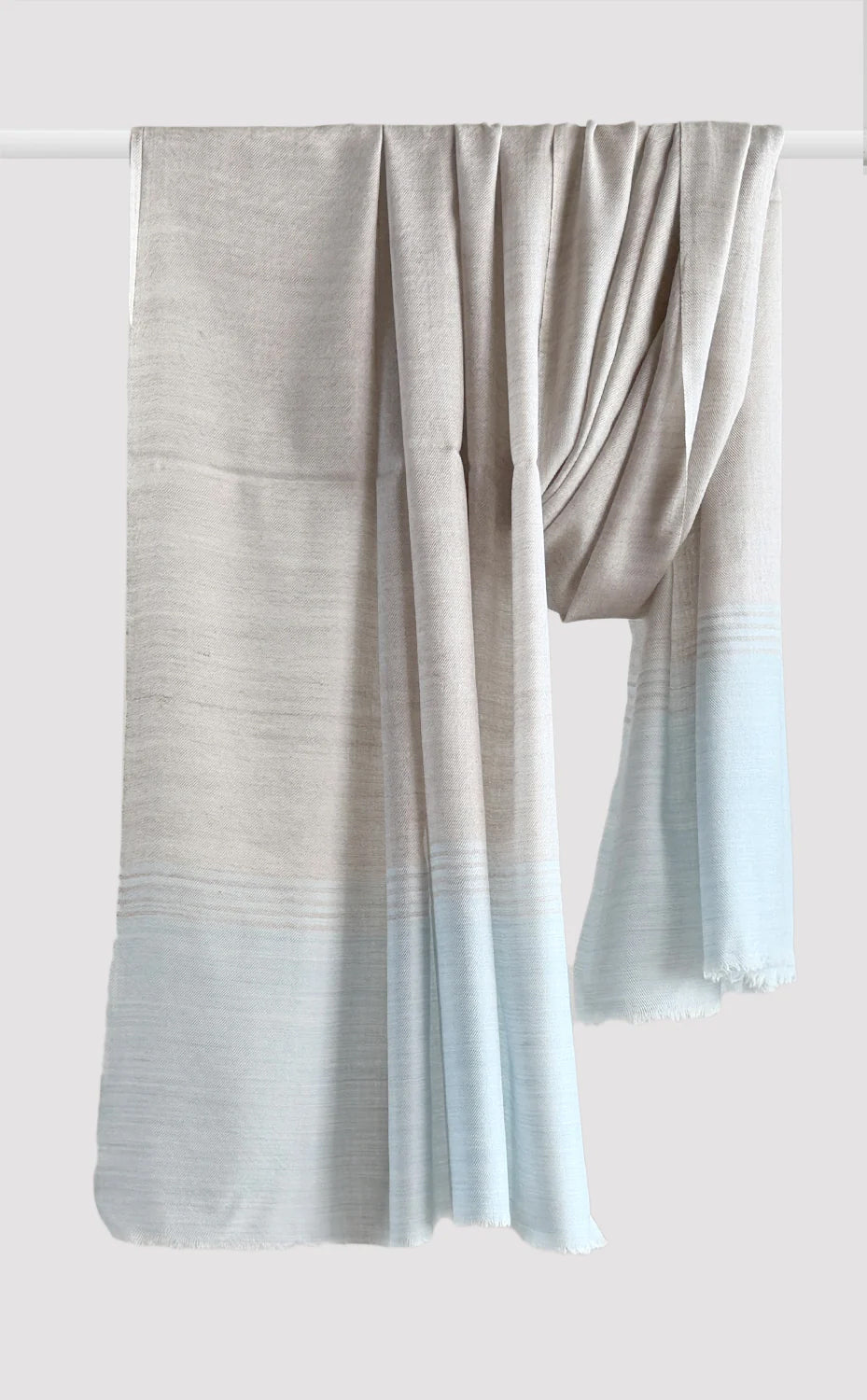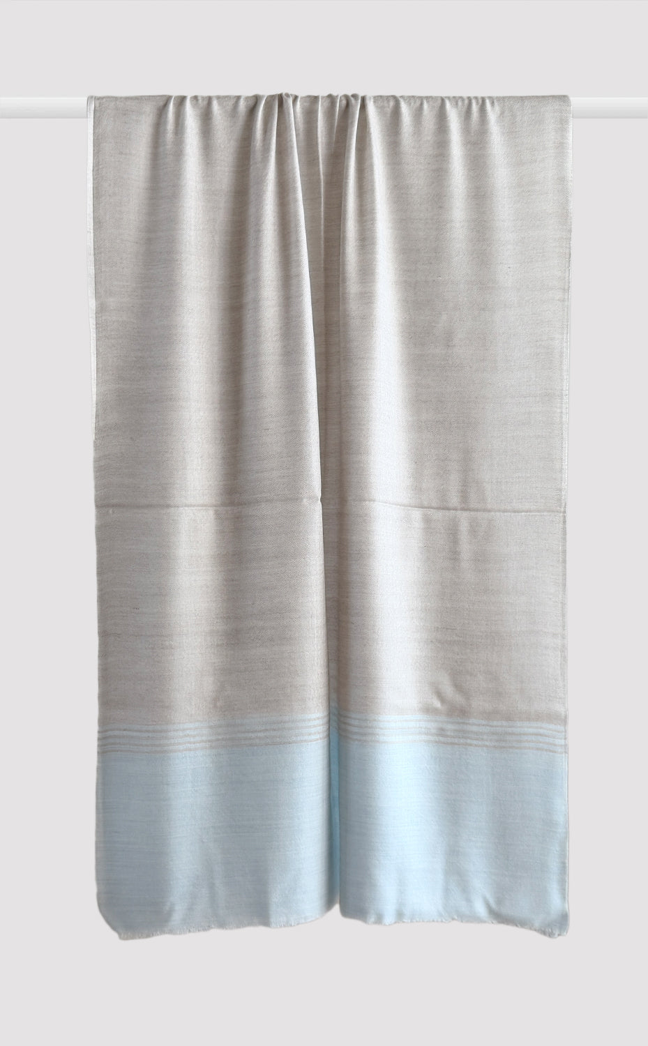 Regular price Rs. 5,400.00Luxurious fine wool stole in sky blue colour with a contrasting tint shade. The fine wool blended with silk gives it an ultra soft & cosy feel