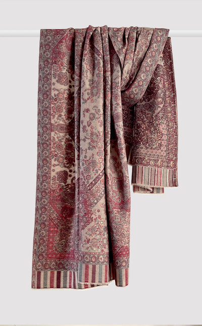Regular price Rs. 10,200.00Luxurious fine wool shawl in beautiful plum color and gold zari. A perfect accessory for the festive winter season that will elevate all your outfits
