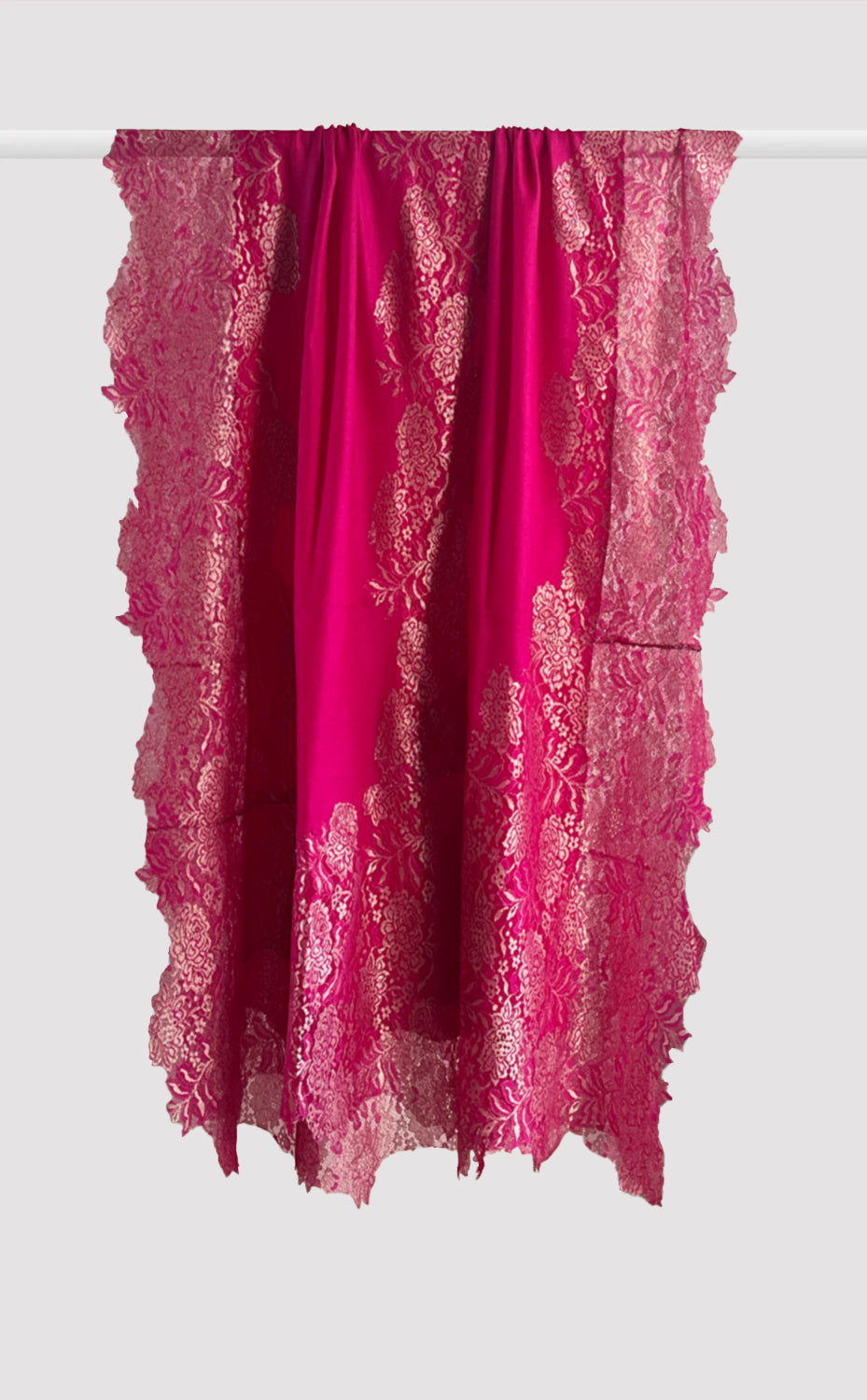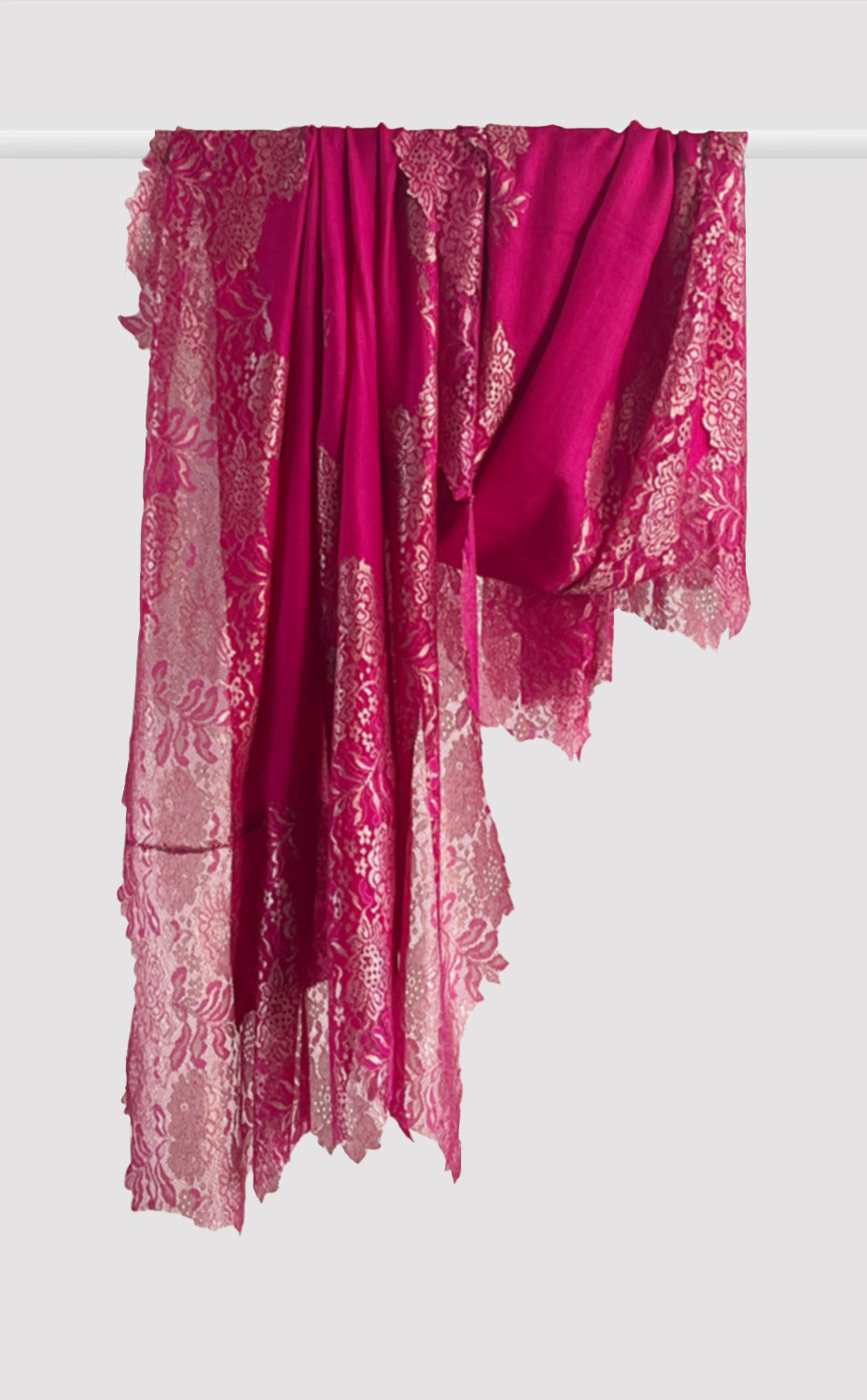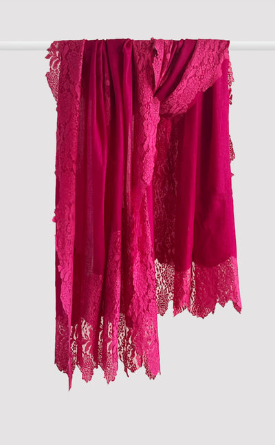 Regular price Rs. 8,160.00Luxurious fine wool shawl in a rich vintage pink blue color with french chantilly lace. A lovely piece for a formal evening out
