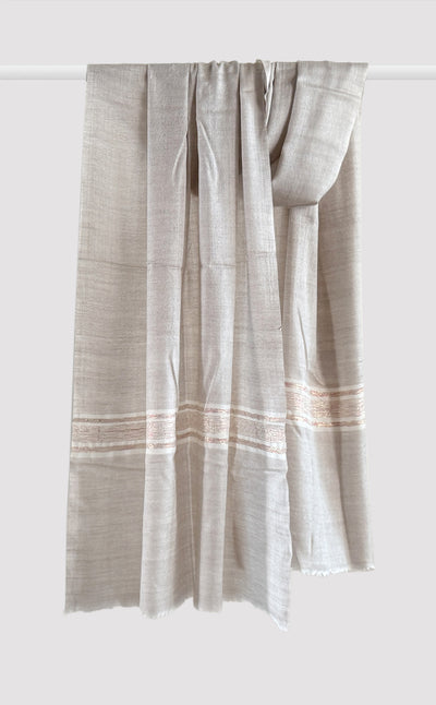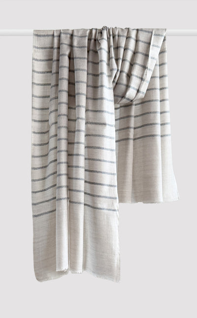 Regular price Rs. 5,400.00Luxurious fine wool stole in pale grey tone with lines. Fine wool blended with silk gives it an ultra soft & cosy feel