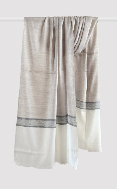 Regular price Rs. 10,800.00A beautiful pashmina shawl with dual colors, silver on one side and grey on the other. Carry it on a formal winter evening for a classic & elegant look. Each dual-coloured piece has been finely woven to create a seamless, reversible look