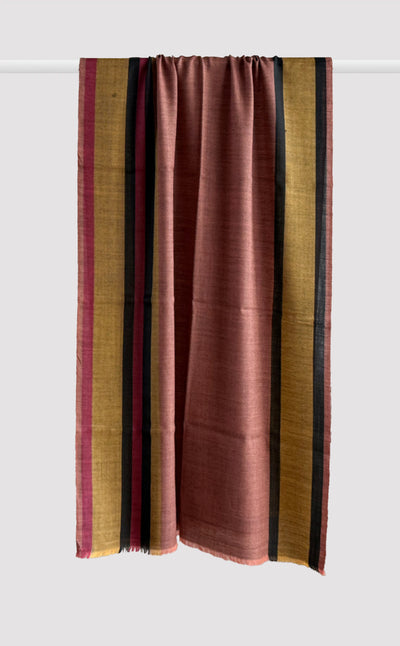 Regular price Rs. 9,600.00Luxurious fine wool shawl in classic ruby with a contrasting rust zari stripes. The fine wool blended with silk gives it an ultra soft & cosy feel