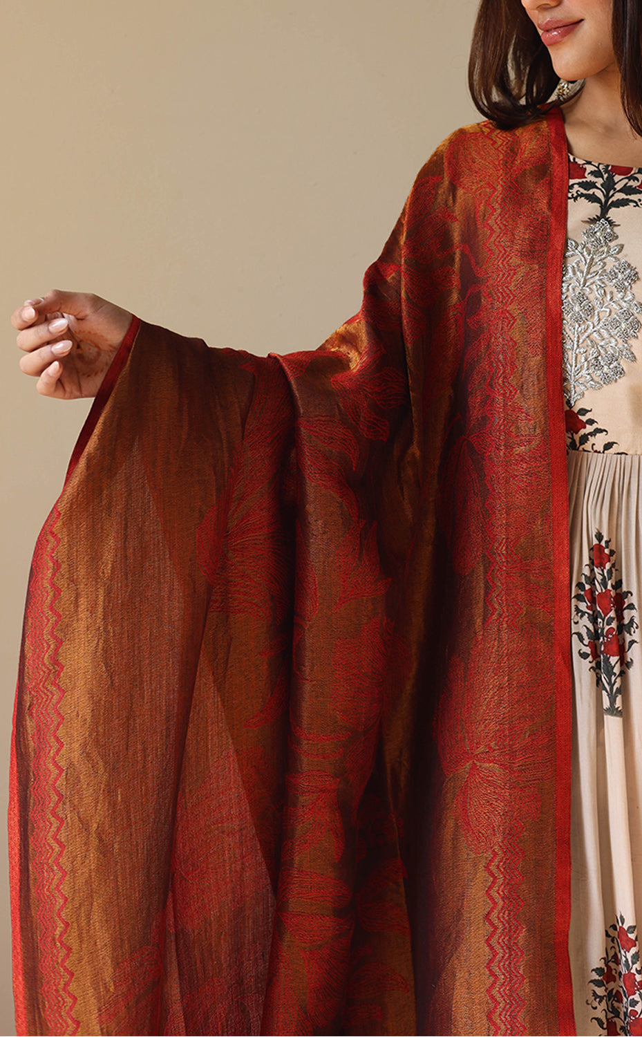 Crimson Floral Zari Shawl