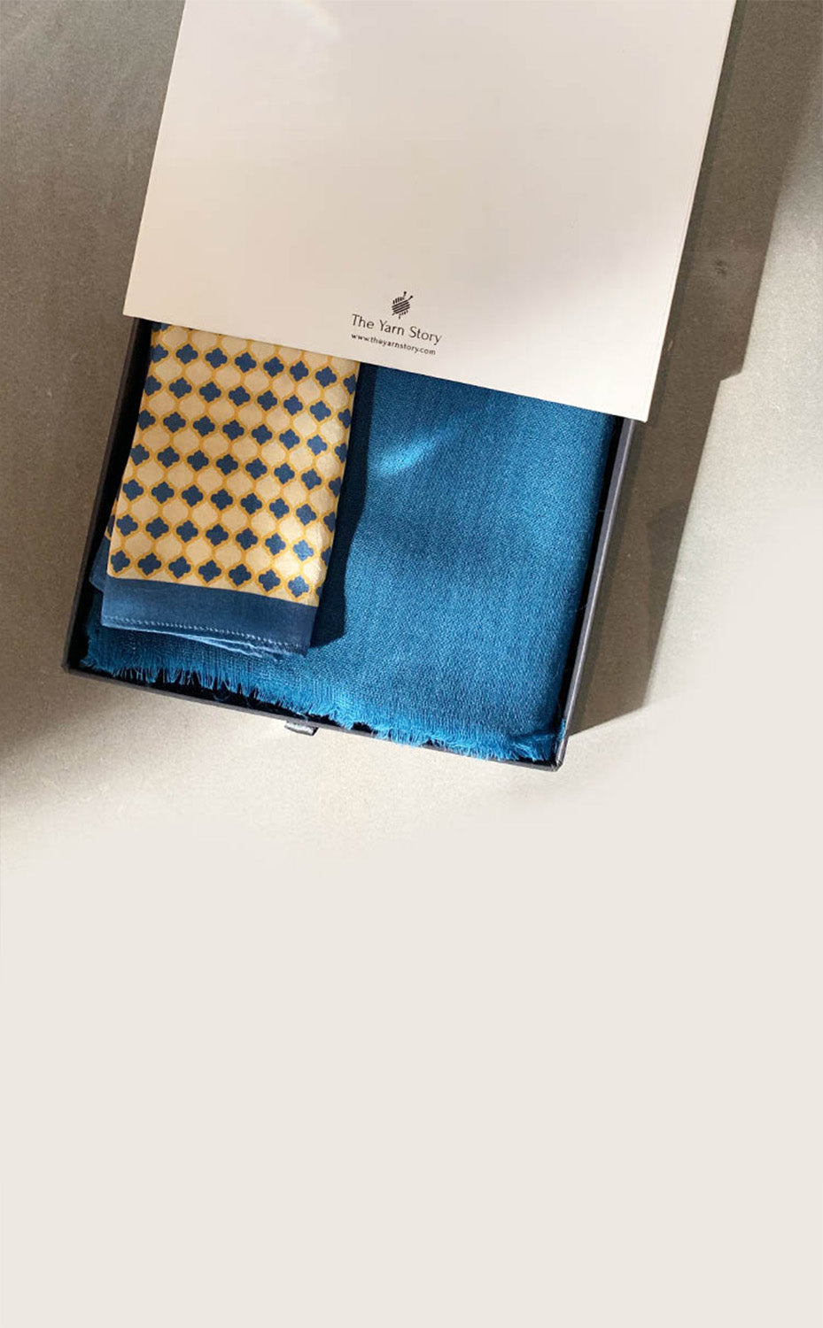 - White gift box packaging for the muffler and pocket square