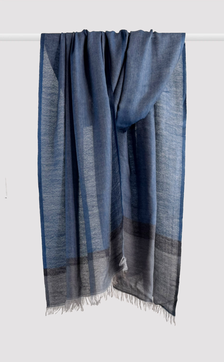 Regular price Rs. 4,000.00This design creates a visually captivating and harmonious blend of color, texture, and series of block stripes of hues seamlessly woven together adding depth and dimension to the stole